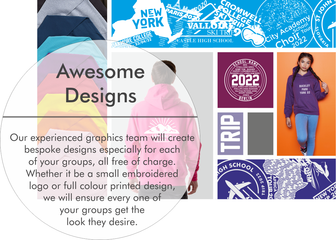 Fully customisable wide range of school trip hoodies. Starting from just £11.45 including back print!